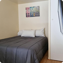 Installez-vous dans notre studio tout équipé, parfait pour un séjour en solo. Fonctionnel et chaleureux, il comprend un espace nuit, une kitchenette et une salle de bain privée pour allier liberté et confort.